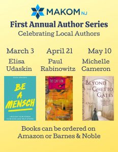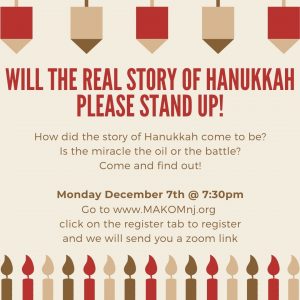 Get to know the MAKOMnj community in a more intimate way at a casual potluck Shabbat dinner.  Dinner is called for 6:30 pm at Rabbi Miller’s home. We begin with the traditional Shabbat blessings and then a delicious meal! MAKOMnj will cook the chicken and bake the challah.