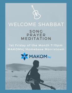 Get to know the MAKOMnj community in a more intimate way at a casual potluck Shabbat dinner. Dinner is called for 6:30 pm at Rabbi Miller’s home. We begin with the traditional Shabbat blessings and then a delicious meal! MAKOMnj will cook the chicken and bake the challah.